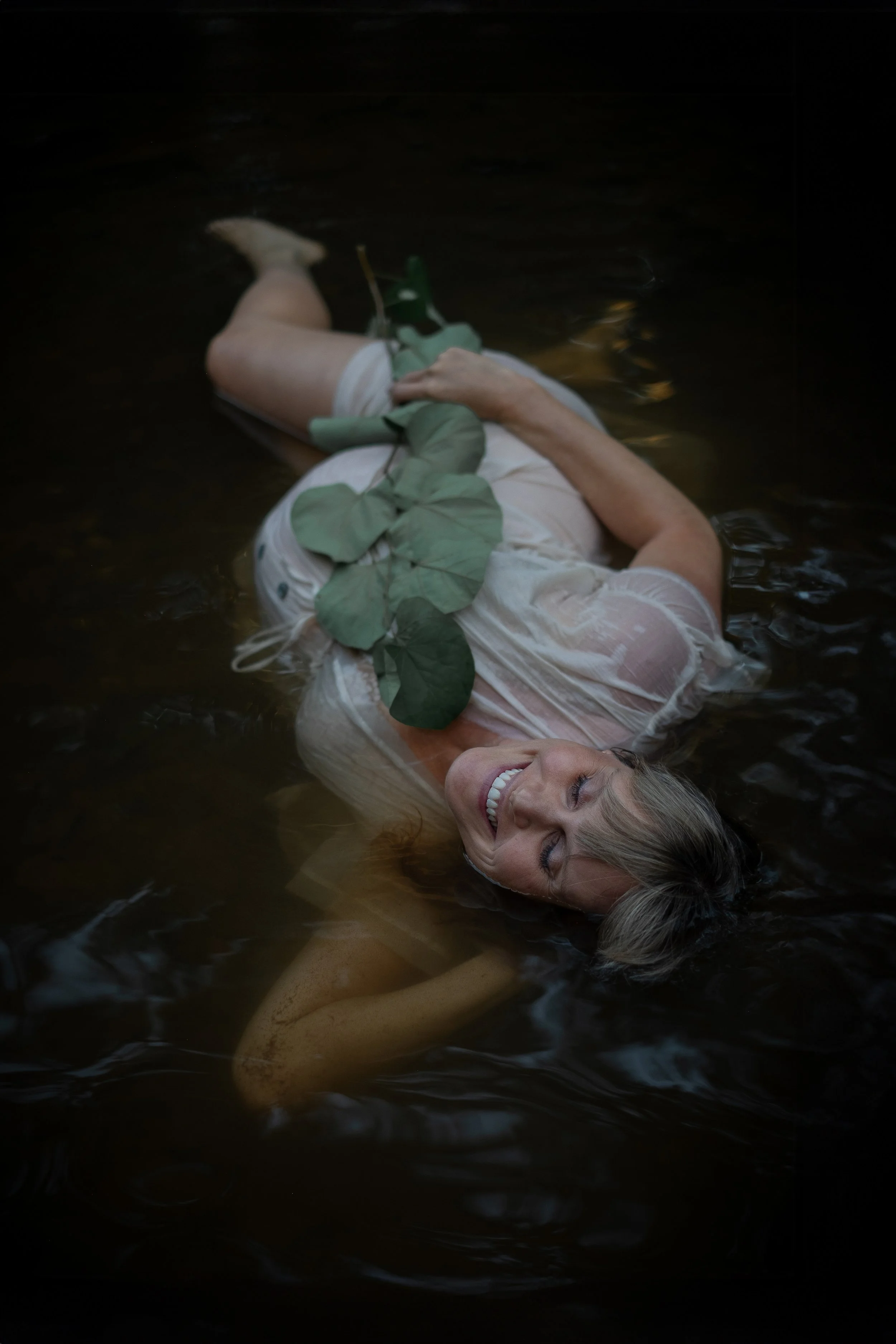 Ellese’s confidence grew steadily throughout our time together. I remember near the end of our session, as the light softened and slowed, everything felt still and deep. Her dress folded around her like water itself, moving with the gentle current of the river. The water cradled her, a quiet link back to the earth and the rhythms of nature. It was a simple, powerful moment — serene and alive, much like pregnancy itself.